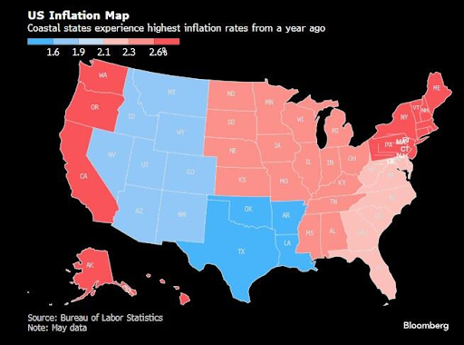 The Mid-Atlantic states along with New England states recorded inflation at 2.8% in May.